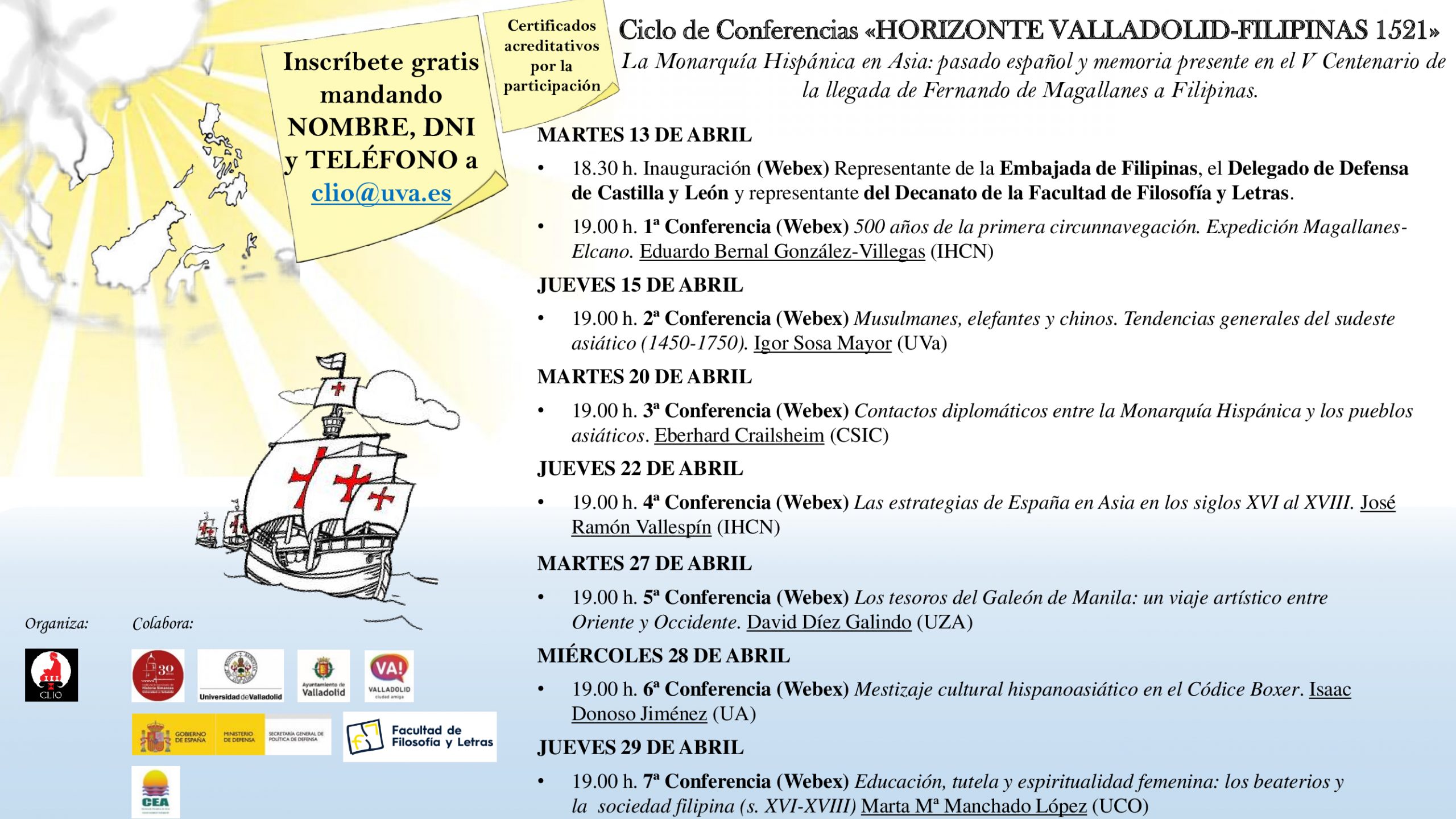 CICLO DE CONFERENCIAS «HORIZONTE VALLADOLID-FILIPINAS 1521». ASOCIACIÓN CLIO